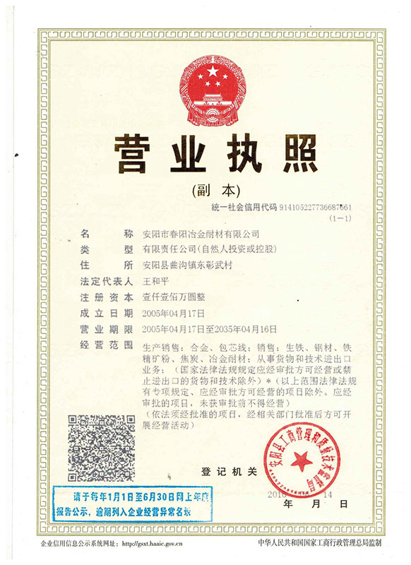 2005年04月 安陽市春陽冶金耐材有限公司成立